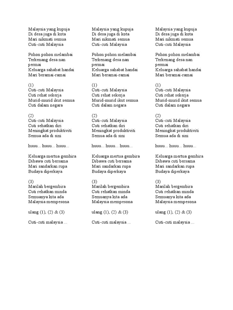 Lirik Lagu Cuti Cuti Malaysia Pdf